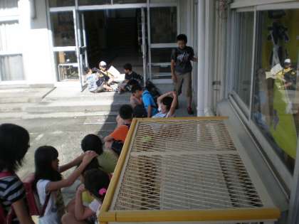 早めに学校に来ていた子たちも、日陰に避難していました。