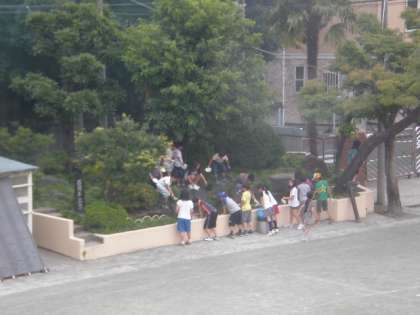 校庭の池に行きました。