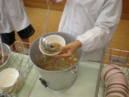 今日は若小名物の七夕メニューである「七夕汁」が出ました。