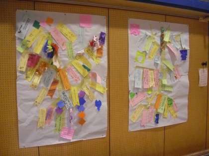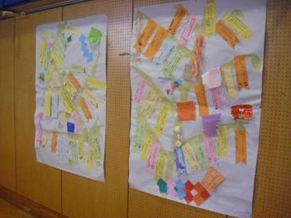 体育館に張られた短冊には、将来の夢、勉強のことなど