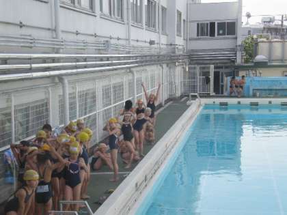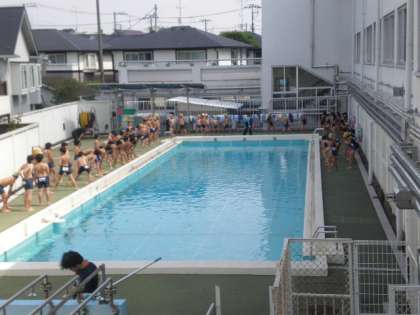 今までは涼しい日が多かったのですが、今日は水温28度、気温も30度に迫ろうという中でのプールになりました。