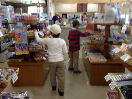 ラベンダー畑を抜けて、おみやげ屋さんにきました。家族の顔を思いながら一生懸命選んでいます。みんな元気です。9時30分