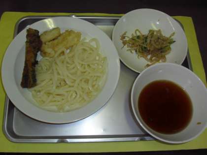 献立名 冷やしつけ麺 牛乳 天ぷら ごま酢かけ