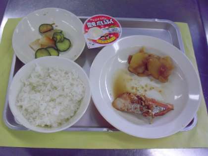 献立名 ごはん 牛乳 魚のしょうが風味焼き じゃがいもの甘辛煮 しゃきしゃき野菜