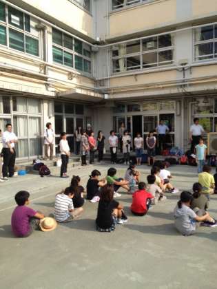 出発式を終え、全員元気に出発です。たくさんのお見送りありがとうございました。7時50分