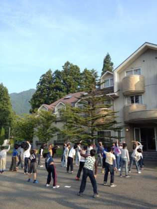 おはようございます。みん なぐっすり眠り、元気に朝の会と朝食です。6時40分