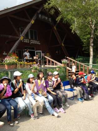 光徳牧場に到着しました!出発してから5時間30分、励ましあいながら全員完歩できました。ガイドさんとお別れして、お楽しみのアイスクリームです。3時10分