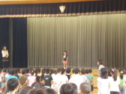 始業式の後に、全校児童の前で自己紹介をしてもらいましたが、