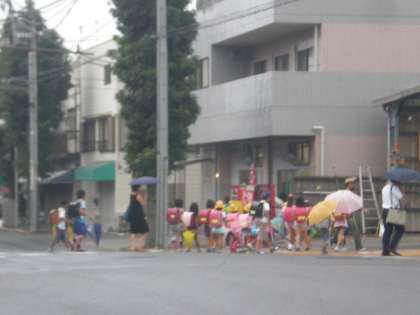 朝方の雨にもかかわらず、みんなちゃんと上手に登校できています。