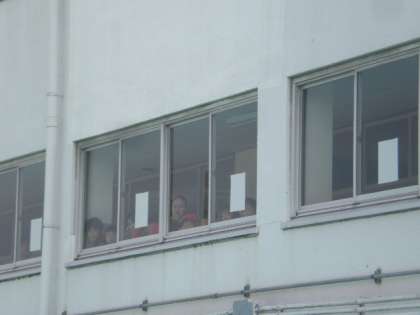1階、2階、3階の窓から熱い声援を送っていただき、
