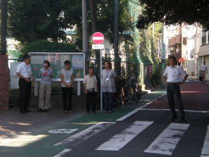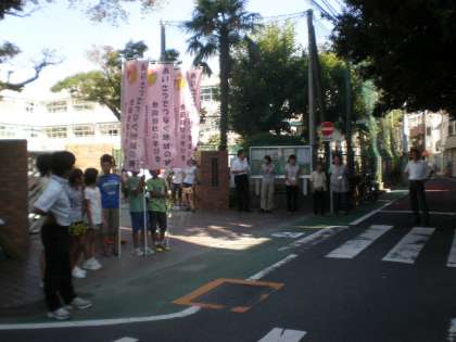 正門の前はもうあいさつ運動参加者でいっぱいです。