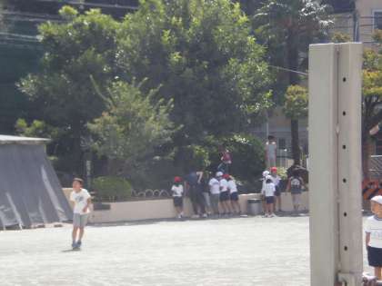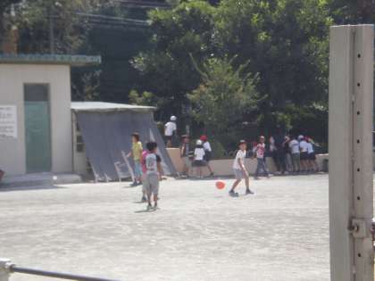 ボール遊びやクラス遊びをする子で校庭は混み合っていました。