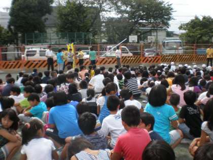 校庭に避難を開始しました。