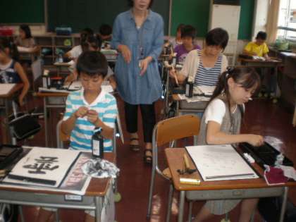 みんな納得の文字が書けたようで、さわやかにお習字の時間を終えたのでした。