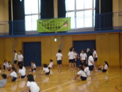 3・4年生が運動会で踊るソーラン節の練習をしています。