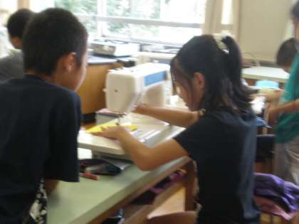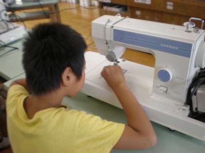 5年生の家庭科でミシンの糸かけにチャレンジしました。