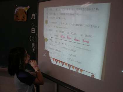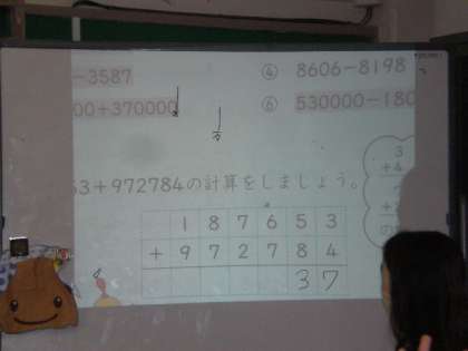 若小には全学級と算数の教室に実物投影機とモニターが配備されています。