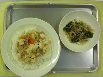 献立名 家常豆腐丼 牛乳 じゃこサラダ