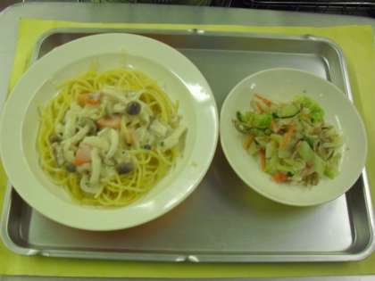 献立名 スパゲッティきのこソース 牛乳 ごぼうチップサラダ
