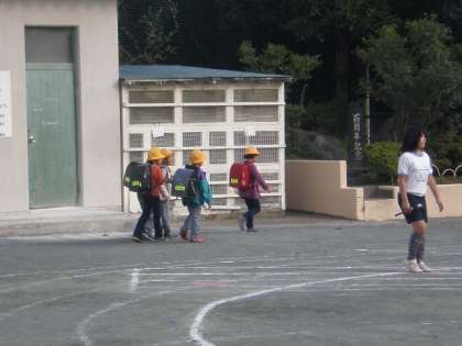 1年生の子は鼓笛隊の演奏に合わせて、行進しながら下校していました。