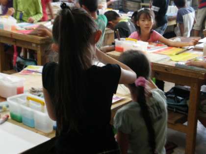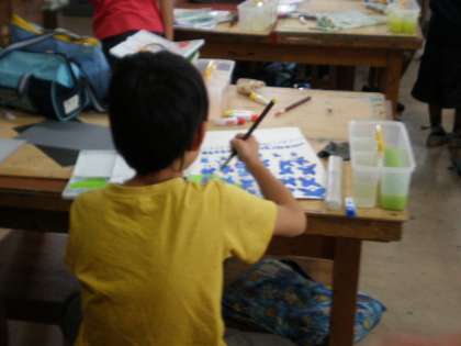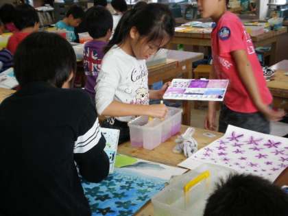 4年生が図工の時間に水彩を楽しみました。