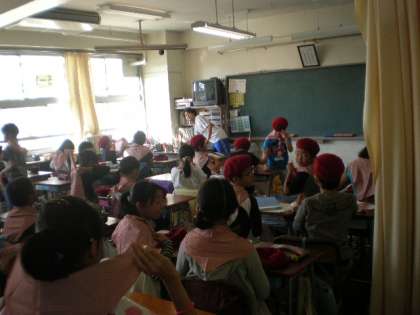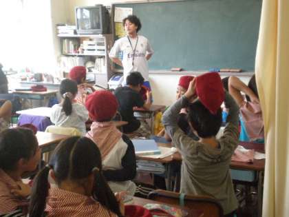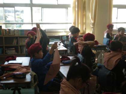 5年生の子たちにいよいよベレー帽とスカーフが配られました。