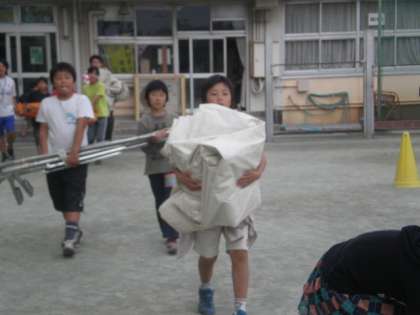 高学年の子が協力をして、運動会の前日準備を行いました。