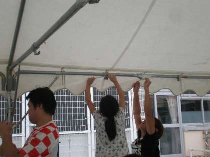 テントを張ったり、放送の準備をしたり、校庭を整備したり・・・