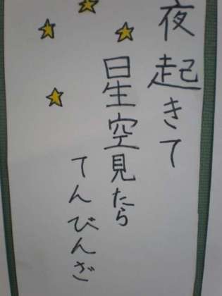 4年生の教室の前に、日本語の時間につくった俳句が掲示されています。
