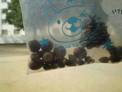 木漏れ日の中を友達と一緒に秋探しをして、とても満足げな1年生でありました。