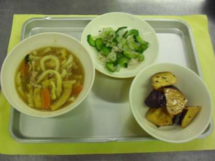 献立名 カレーうどん 牛乳 野菜のゆかりかけ 大学芋