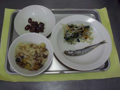 献立名 秋の香りごはん 牛乳 焼きししゃも おひたし