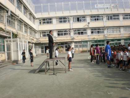 運動会の全校練習のためにお休みが続いていた児童朝会が、