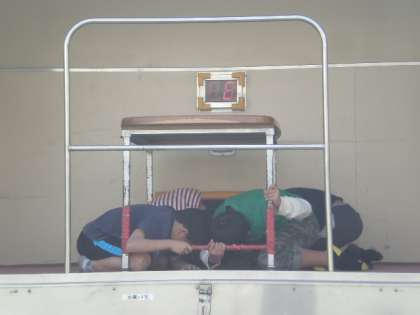 避難訓練の中で、起震車体験が行われました。