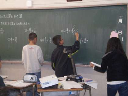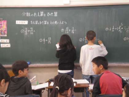 5年生が新しい単元「分数のたし算ひき算」の学習をがんばっています。
