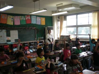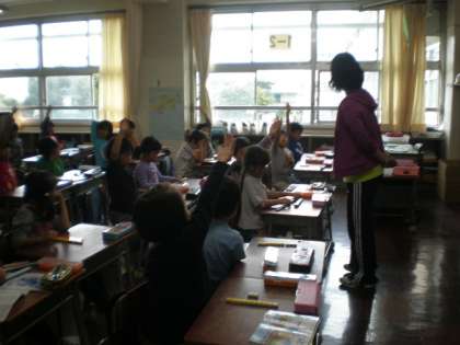 教育実習生の先生も楽しそうに学習の様子を見つめていました。