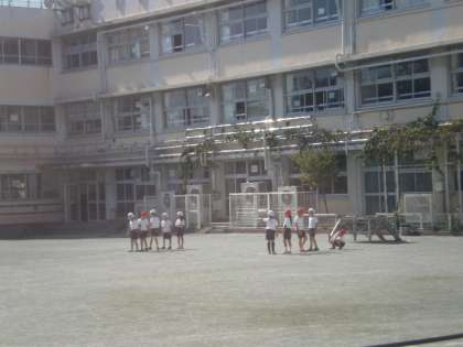 1年生がさわやかな秋空の下で、元気に体育をしていました。