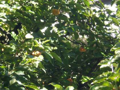 若小の歴史ある柿の木には赤く大きな実がついています。