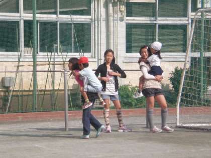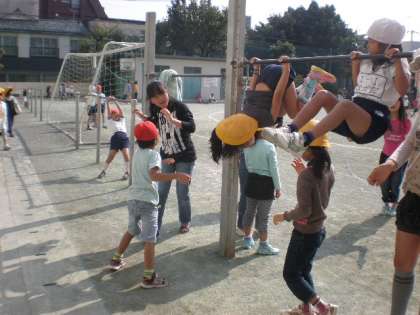 今でも校庭では一緒に仲良く遊ぶ様子が見られます。