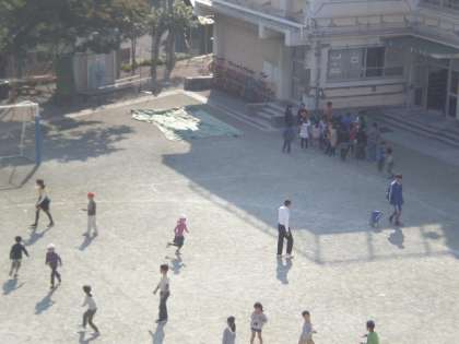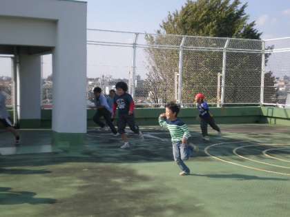 校庭、屋上、体育館に分かれて若小班遊びを行いました。