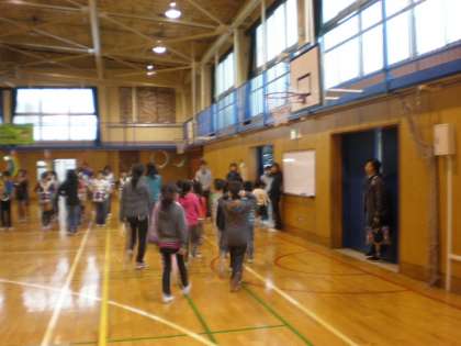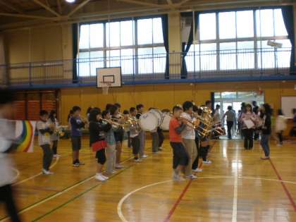 教室に戻るときには6年生が演奏する「若小マーチ」に合わせて、