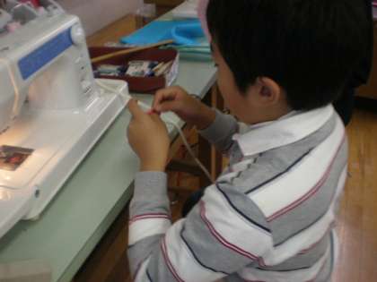 作品が早く仕上がった子は、巾着袋や画鋲アートにチャレンジしました。