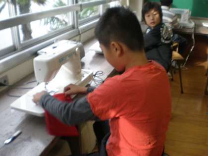 6年生が家庭科の学習で取り組んでいるクッション作りが、