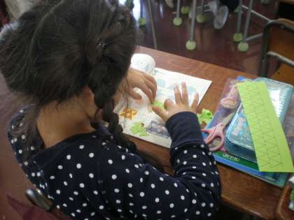 二等辺三角形を組み合わせた模様作りにチャレンジしました。