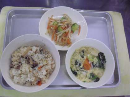献立名 吹き寄せごはん 牛乳 かき玉汁 ごま酢かけ