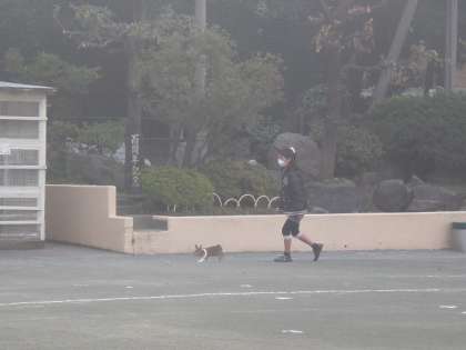 今日は飼育小屋からウサギさんを出して、運動をさせてあげていました。