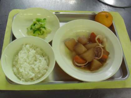 献立名 ごはん 牛乳 いかと大根のうま煮 ひとしお野菜 みかん