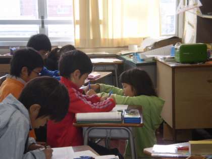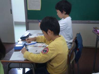 とても仲のいい3年生ですので、不安な子にもうできあがっている子が教えてあげていました。