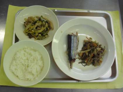 主な食材の産地 米(北海道)さんま(北海道)油揚げ(カナダ)大豆(北海道)きざみ昆布(中国)にんじん(北海道)こまつな(長崎)れんこん(茨城)ごぼう(埼玉)干ししいたけ(宮崎)しめじ(長野)はくさい(長野)えのきだけ(長野)