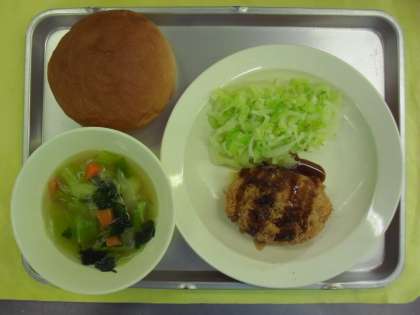 献立名 丸パン 牛乳 コロッケ ゆでキャベツ 野菜スープ